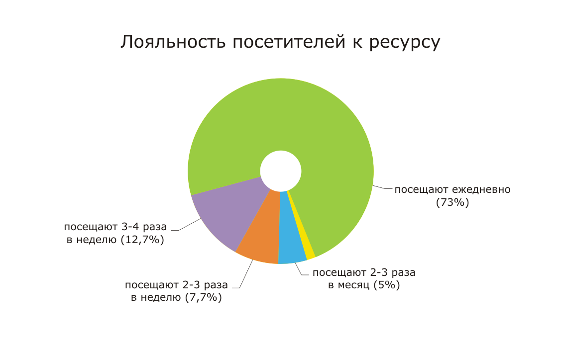 18% посетителей просматривают более 15 страниц портала, средне число просмотров сайта на одного посетителя составляет 9 страниц. Еженедельный прирост числа уникальных посетителей портала Rabota7 составляет 10–15%. |